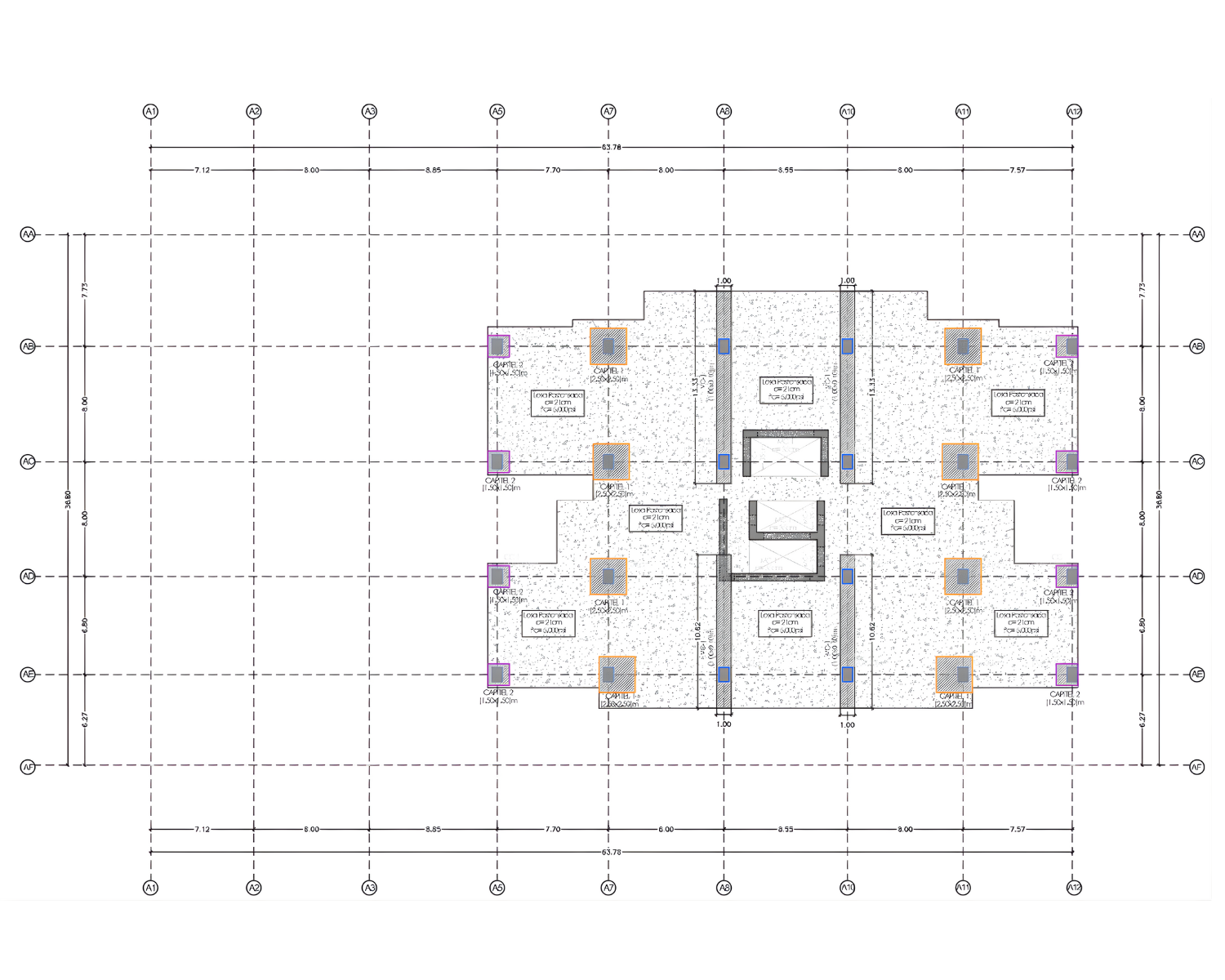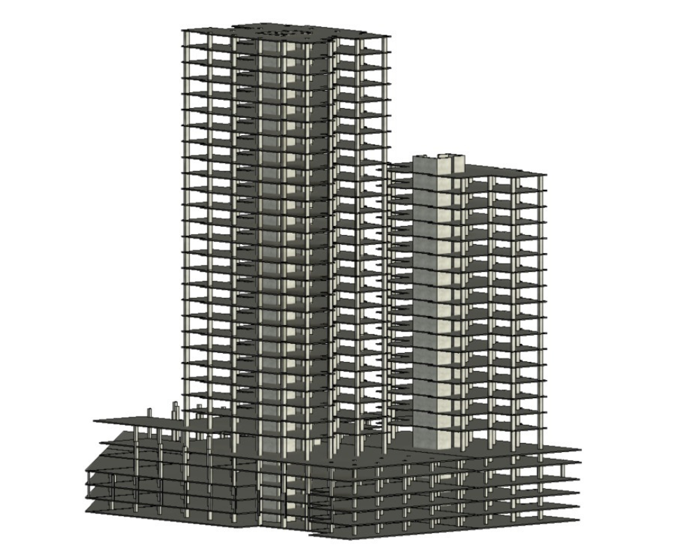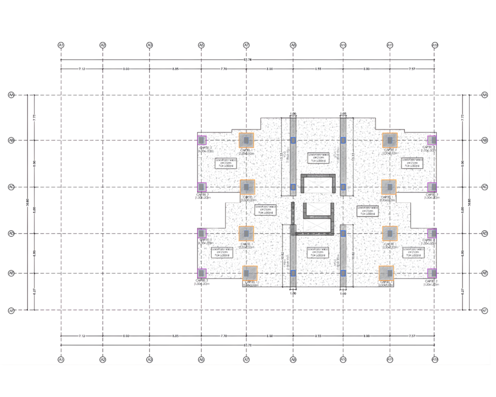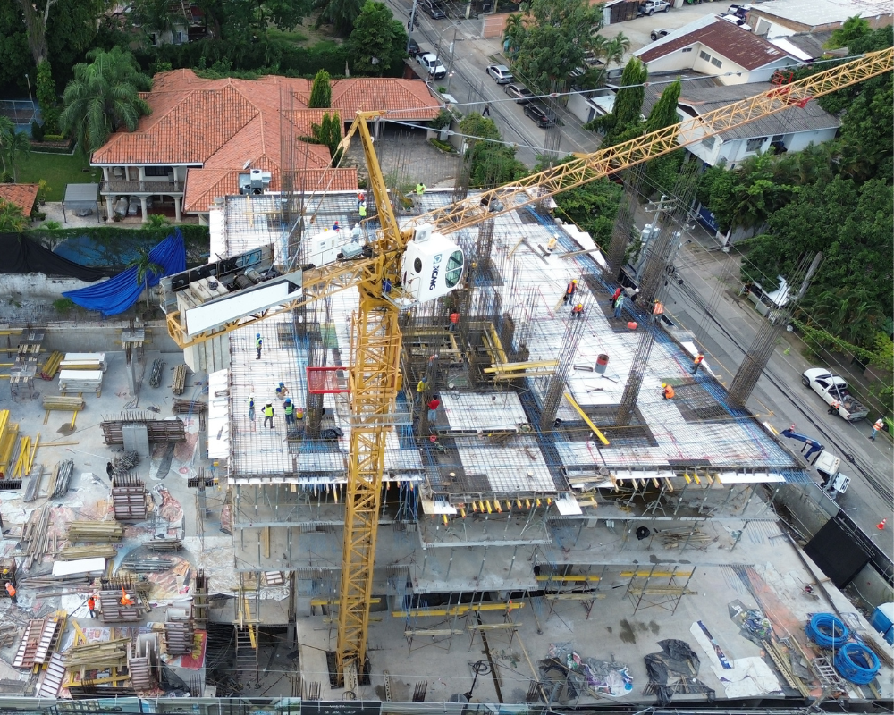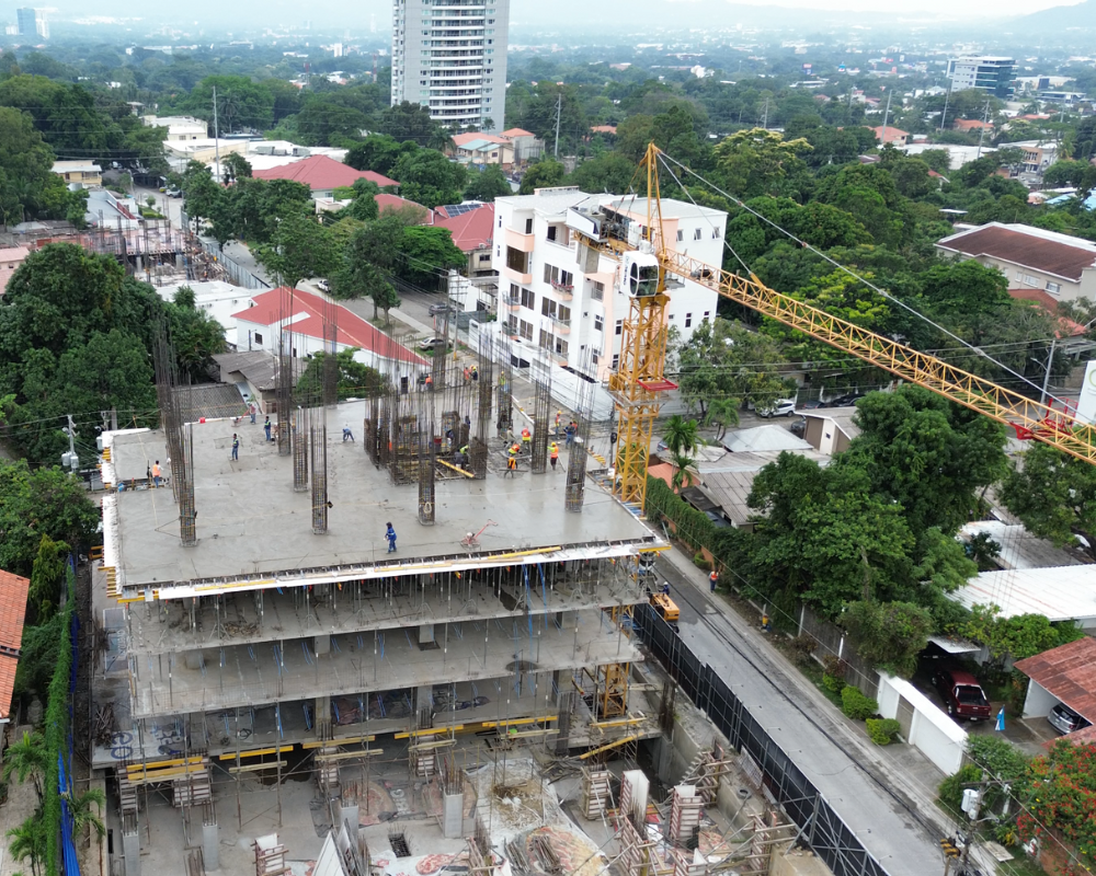 Sistema Constructivo Implementado: Sistema dual columnas y muros de cortante con losas postensadas