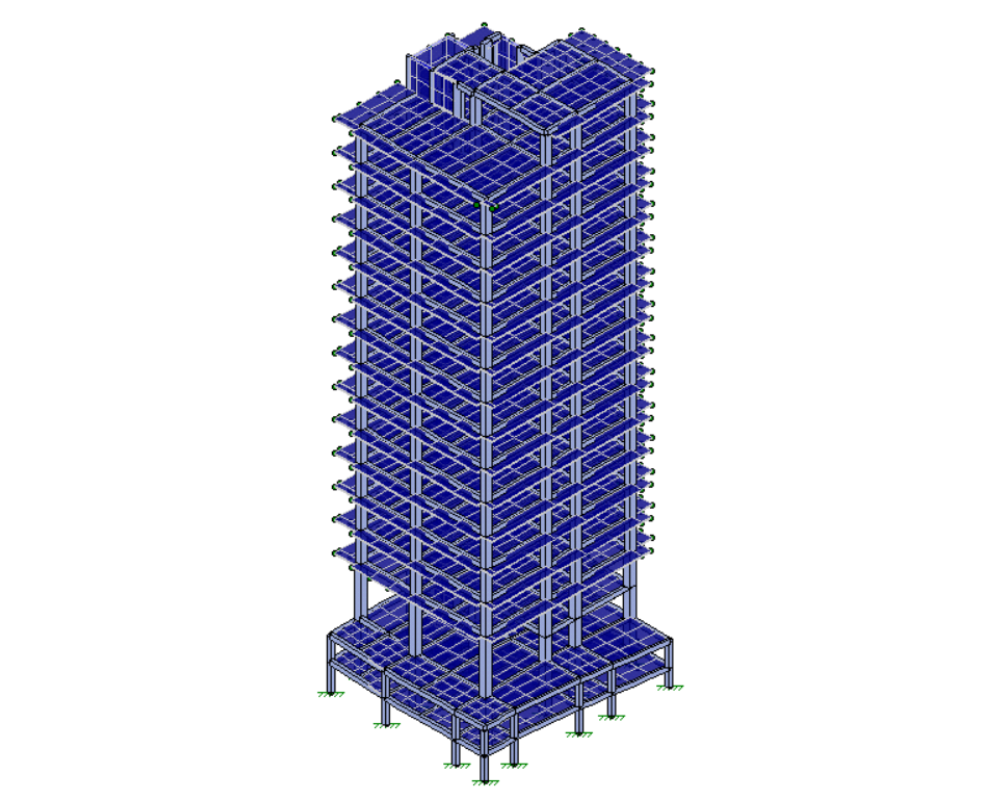 Sistema de Cimentación: estructura mixta de losa de cimentación, zapatas aisladas y pilotes.